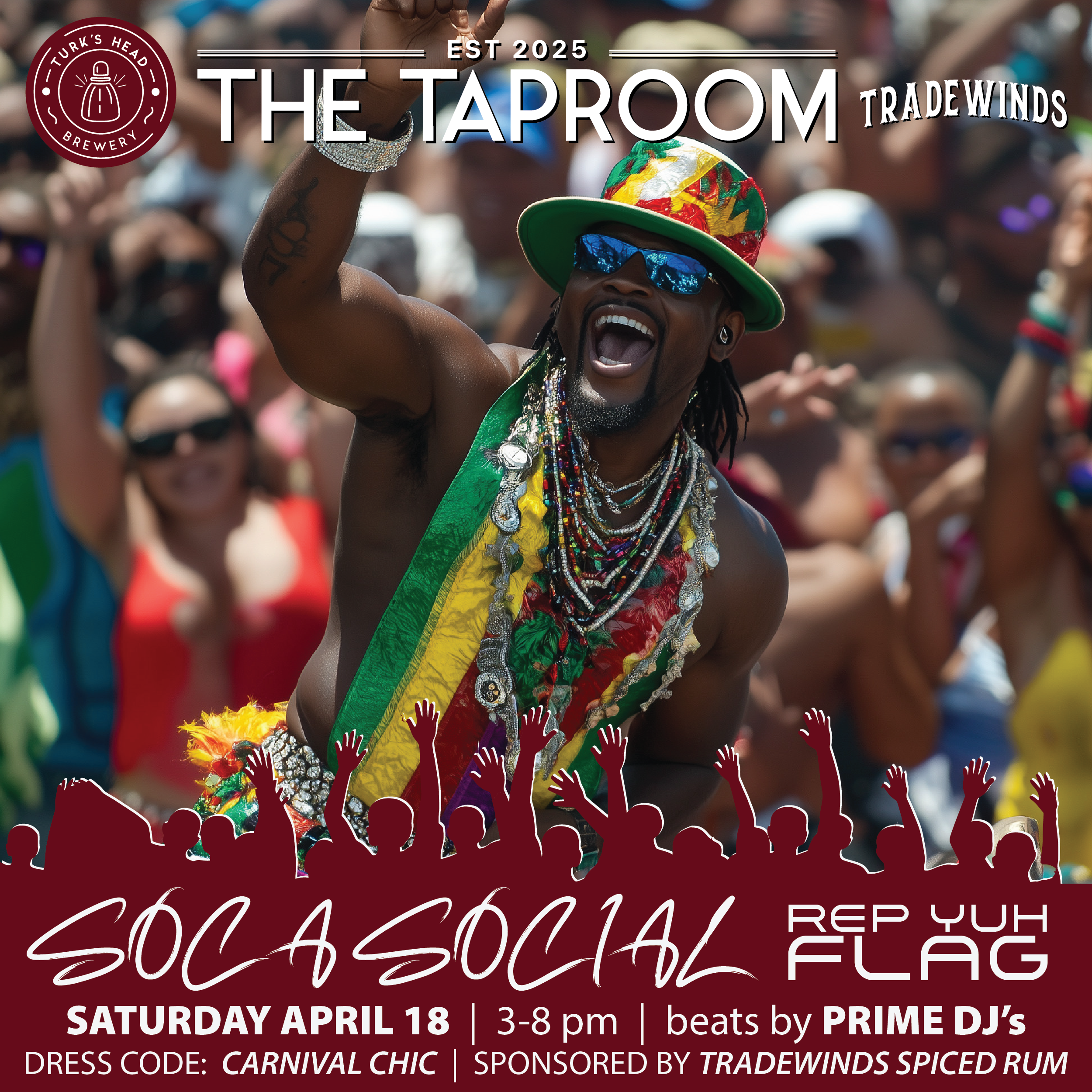 Arrive early, gather your crew, and get ready for an afternoon of music, movement, and Caribbean celebration at The Taproom.